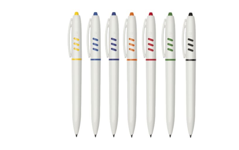 Blauschreibender oder schwarzschreibender Kugelschreiber mit ~ farbigem, grifffestem Vorderstück ~ Metallclip